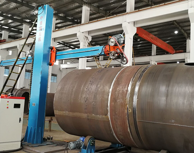 該設備主要用于大、中型焊接鋼管、罐體焊縫的磨削加工。適合內外直焊縫、環焊縫打磨拋光。生產效率高,勞動強度低,焊縫打磨效果好,且不傷管材本體,是打磨焊接鋼管管端直焊縫的理想設備。