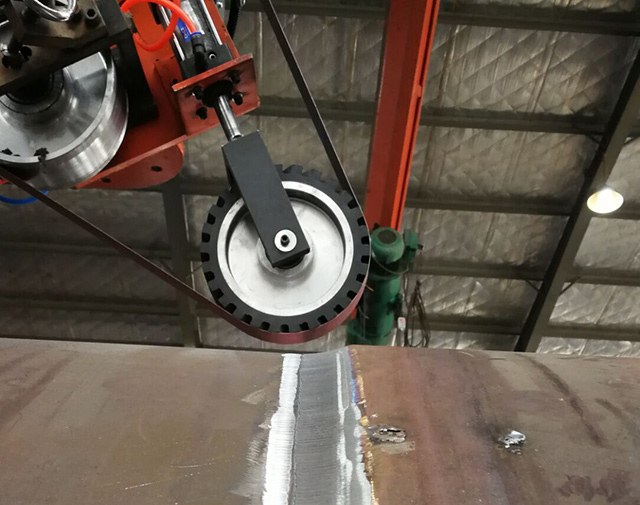 該設備主要用于大、中型焊接鋼管、罐體焊縫的磨削加工。適合內外直焊縫、環焊縫打磨拋光。生產效率高,勞動強度低,焊縫打磨效果好,且不傷管材本體,是打磨焊接鋼管管端直焊縫的理想設備。